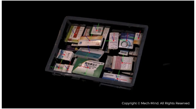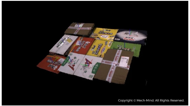 同时,我们将模拟真实物流应用场景,展示梅卡曼德3D视觉产品对多SKU纸箱&麻袋、紧密贴合的周转箱、乱序堆叠的药盒的精准识别结果。高性能Mech-Eye工业级3D相机对各类典型物体生成高质量点云数据。Mech-Vision机器视觉软件内置先进3D视觉算法,获取点云信息后,迅速生成精准位姿信息。